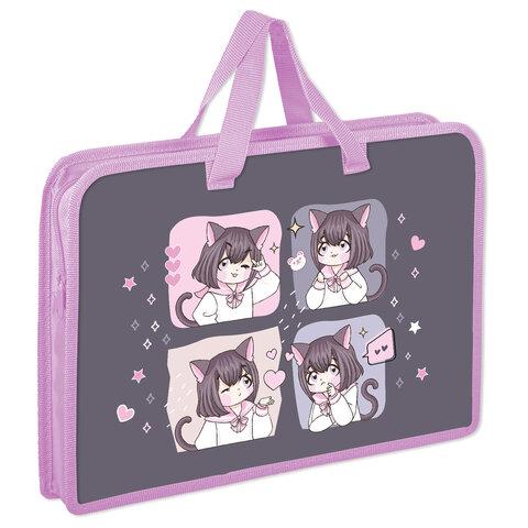 Папка на молнии с ручками ЮНЛАНДИЯ А4, 1 отделение, пластик, 80 мм, "Anime fan", 273362