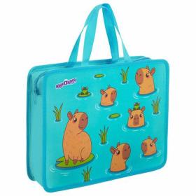 Папка на молнии с ручками ЮНЛАНДИЯ А4, 1 отделение, пластик, ширина 45 мм, "Capybaras", 272149