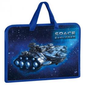 Папка на молнии с ручками ЮНЛАНДИЯ А4, 1 отделение, пластик, ширина 45 мм, "Space explorer", 270949