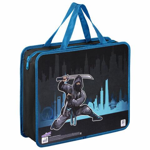 Папка на молнии с ручками ЮНЛАНДИЯ А4, 1 отделение, пластик, ширина 80 мм, "Black Ninja", 271463