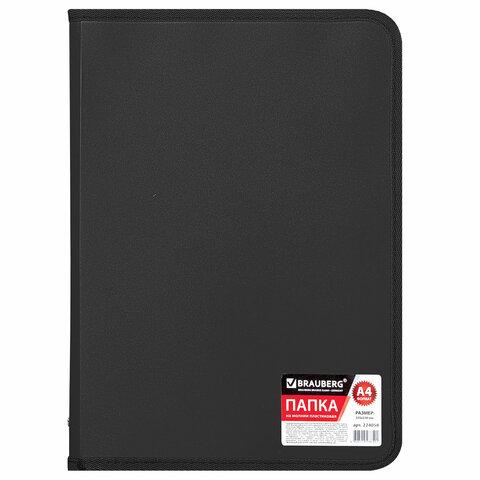Папка на молнии пластиковая BRAUBERG "Стандарт", стандартная фактура, А4, 325х230 мм, матовая, черная, 224058