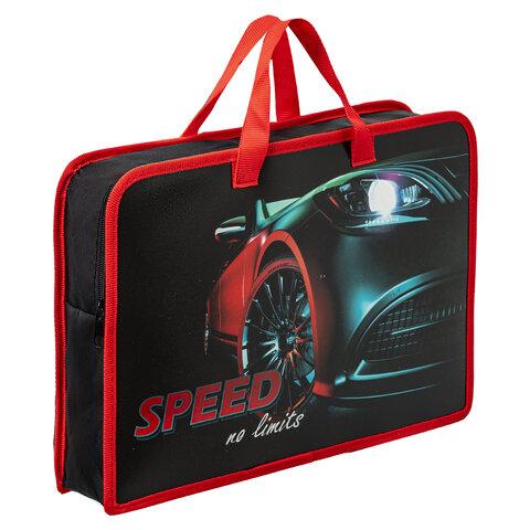 Папка на молнии с ручками ЮНЛАНДИЯ А4, 1 отделение, пластик, 80 мм, "Fire car", 272155