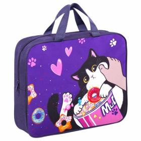 Папка на молнии с ручками ПИФАГОР А4, 1 отделение, пластик, ручки-шнурок, "Wild cat", 270864