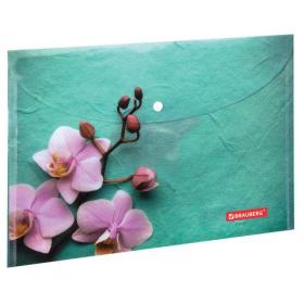 Папка-конверт с кнопкой BRAUBERG "FLOWER", А4, 160 мкм, до 100 листов, цветная печать, 228031