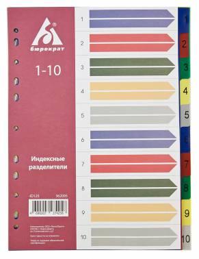 Разделитель индексный Бюрократ ID125 A4 пластик с бумажным оглавлением 1-10