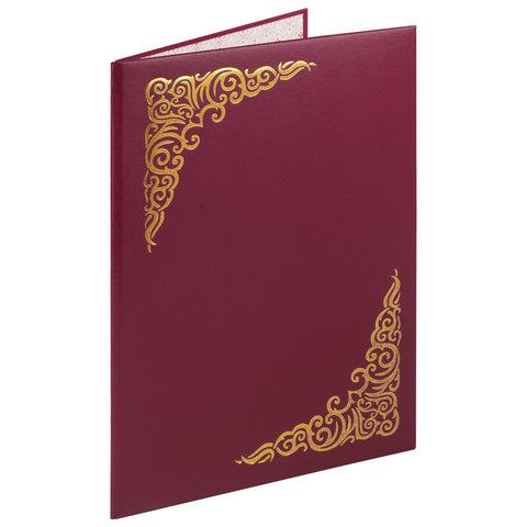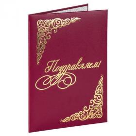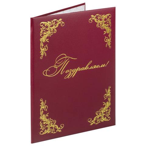 Папка адресная бумвинил "ПОЗДРАВЛЯЕМ!" с виньетками, А4, бордовая, индивидуальная упаковка, STAFF "Basic", 129632