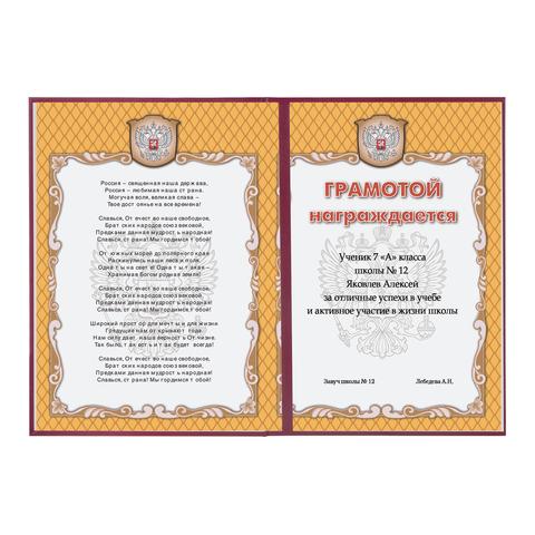 Папка адресная бумвинил с гербом России, формат А4, бордовая, индивидуальная упаковка, STAFF "Basic", 129576