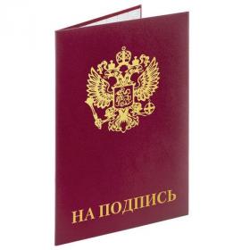 Папка адресная бумвинил "НА ПОДПИСЬ" с гербом России, А4, бордовая, индивидуальная упаковка, STAFF "Basic", 129626