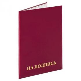 Папка адресная бумвинил "НА ПОДПИСЬ", А4, бордовая, индивидуальная упаковка, STAFF "Basic", 129577