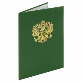Папка адресная бумвинил с гербом России, формат А4, зеленая, индивидуальная упаковка, STAFF "Basic", 129581