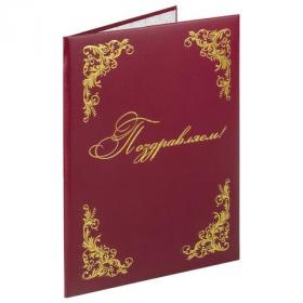 Папка адресная бумвинил "ПОЗДРАВЛЯЕМ!", А4, бордовая, индивидуальная упаковка, STAFF "Basic", 129578