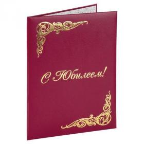Папка адресная бумвинил "С ЮБИЛЕЕМ!", формат А4, бордовая, индивидуальная упаковка, STAFF "Basic", 129579