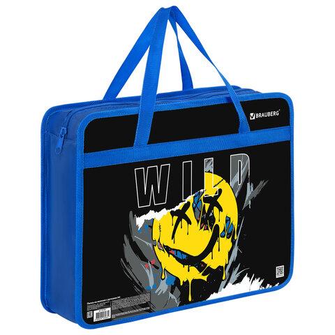 Папка на молнии с ручками BRAUBERG А4, 1 отделение, пластик, 80 мм, "Wild face", 272166