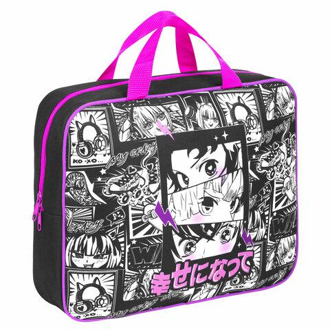 Папка на молнии с ручками BRAUBERG KIDS А4, 1 отделение, полиэстер, 80 мм, "Anime style", 272121