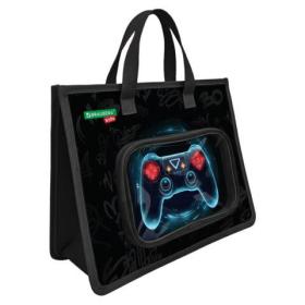 Папка на молнии с ручками BRAUBERG KIDS А4, 1 отделение, доп.карманы, пластик, "Bright gamepad", 274528