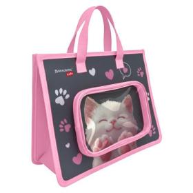 Папка на молнии с ручками BRAUBERG KIDS А4, 1 отделение, доп.карманы, пластик, "Purr cat", 274527