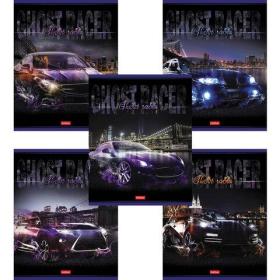 Тетрадь А5 48 л. HATBER скоба, клетка, выборочный лак, "Призрачный гонщик" (5 видов в спайке), 48Т5вмВ1