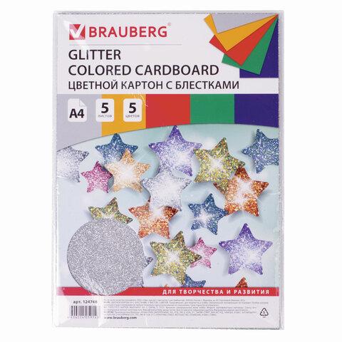 Картон цветной А4 "СУПЕРБЛЕСТКИ", 5 листов 5 цветов, 280 г / м2, BRAUBERG, 124748