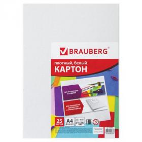 Картон белый А4 МЕЛОВАННЫЙ (белый оборот), 25 листов, BRAUBERG, 210х297 мм, 124021