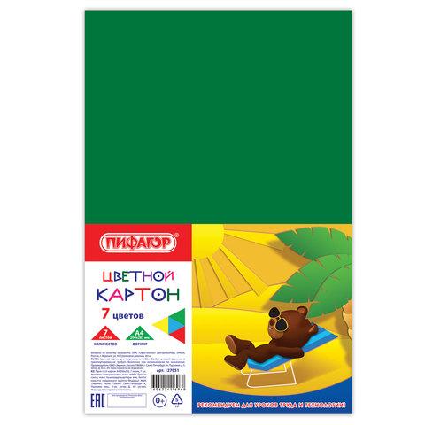 Картон цветной А4 немелованный (матовый), 7 листов 7 цветов, ПИФАГОР, 200х283 мм, 127051