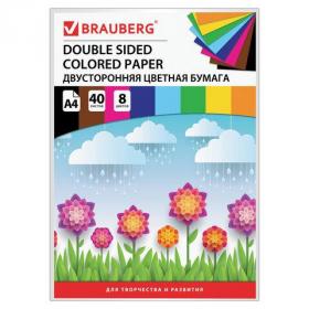 Цветная бумага А4 ТОНИРОВАННАЯ В МАССЕ, 40 листов 8 цветов, склейка, 80 г / м2, BRAUBERG, 210х297 мм, 124714