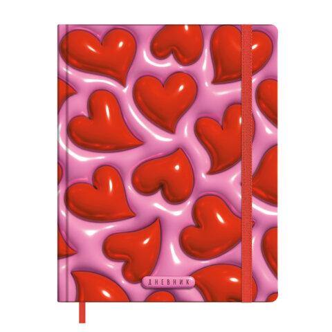 Дневник 1-11 класс 48 л., твердый, BRAUBERG, матовая ламинация, резинка, закладка-ляссе, с подсказом, "Сердечки", 107241
