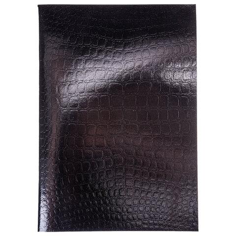 Тетрадь бумвинил А4 96 л., скоба, офсет №1, клетка, ЧЕРНАЯ, "Metallic", тиснение CROCO, HATBER, 072787, 96Т4бвВ3