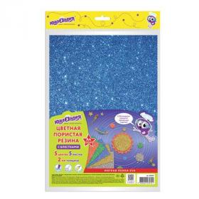Пористая резина / фоамиран А4, 2 мм, НАБОР, 5 листов, 5 цветов, яркие цвета, блестки, ЮНЛАНДИЯ, 662052
