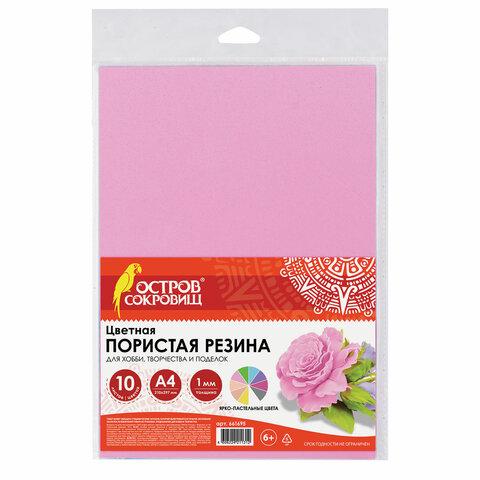Пористая резина / фоамиран А4, 1 мм, НАБОР, 10 листов, 10 цветов, пастельные цвета, ОСТРОВ СОКРОВИЩ, 661695