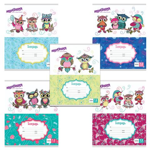 Тетрадь 12 л. ЮНЛАНДИЯ клетка, обложка картон, "УМНЫЕ СОВЫ", 104771