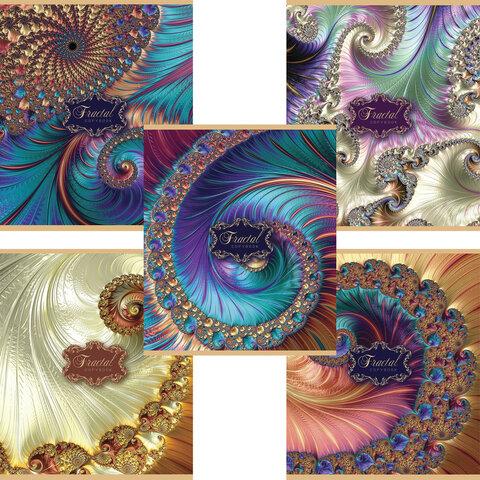 Тетрадь А5, 48 л., ПЗБМ, скоба, клетка, фольга, выборочный TWIN лак, "Фрактал" (5 видов), 027310