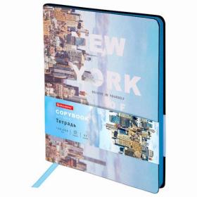 Тетрадь А5 (168х208 мм), 80 л., сшивка, клетка, под кожу, BRAUBERG VISTA, "New York", 403922
