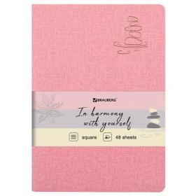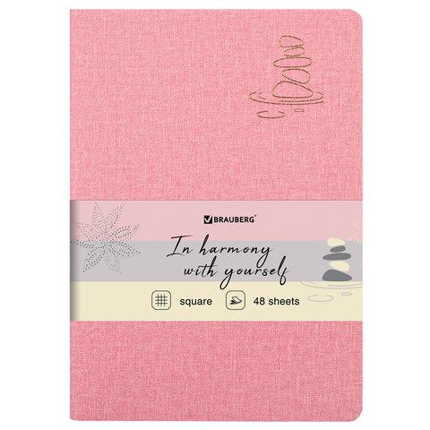 Тетрадь 48 л. в клетку обложка кожзам под рогожку, сшивка, A5 (147х210мм), РОЗОВЫЙ, BRAUBERG HARMONY, 403834