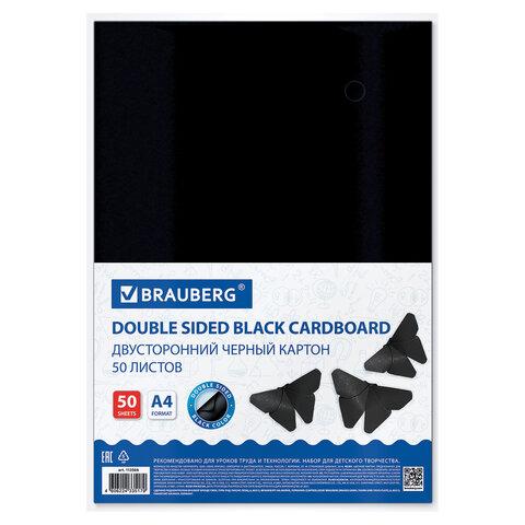 Картон цветной А4 ТОНИРОВАННЫЙ В МАССЕ, 50 листов, ЧЕРНЫЙ, в пленке, 220 г / м2, BRAUBERG, 210х297 мм, 113506