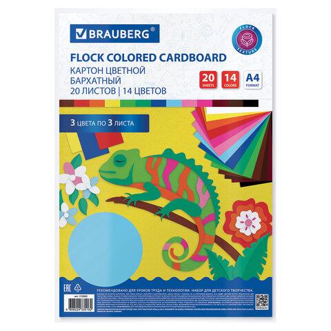 Картон цветной А4 БАРХАТНЫЙ, 20 листов 14 цветов, 180 г / м2, BRAUBERG, 113505