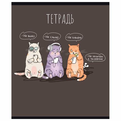 Тетрадь А5, 48 л., HATBER, скоба, клетка, обложка крафт-картон, "Милые зверьки" (микс в спайке), 066339, 48Т5В1