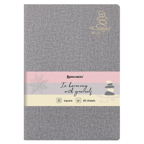 Тетрадь 60 л. в клетку обложка кожзам под рогожку, сшивка, B5 (179х250мм), СЕРЫЙ, BRAUBERG HARMONY, 403839