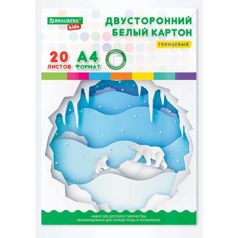 Картон белый А4 МЕЛОВАННЫЙ (белый оборот), 20 листов, в папке, BRAUBERG KIDS, 203х283 мм, 115160