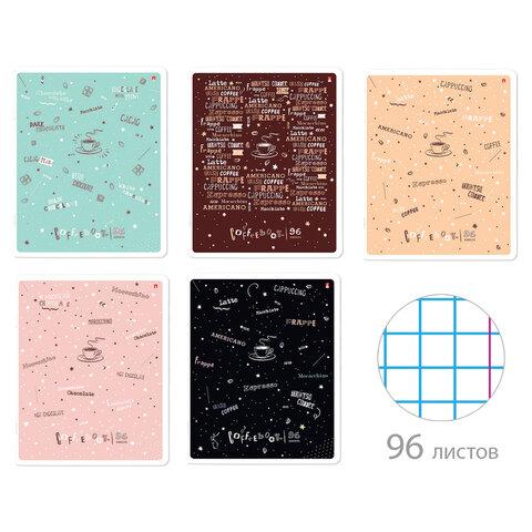 Тетрадь А5 96 л. АЛЬТ скоба, клетка, гибридный лак, "Coffe time" (5 видов), 7-96-1160