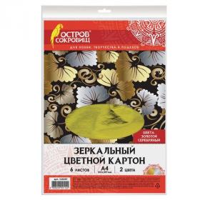 Картон цветной А4 ЗЕРКАЛЬНЫЙ, 6 листов (3 золото + 3 серебро), 230 г / м2, ОСТРОВ СОКРОВИЩ, 129297