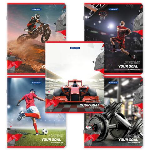 Тетради ДЭК А5 48 л. КОМПЛЕКТ 5 шт., BRAUBERG скоба, клетка, глянцевый лак, "Sport Club", 404675
