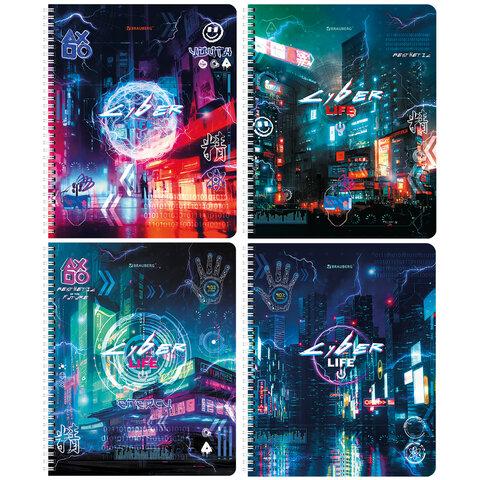 Тетради ДЭК А5 48 л. КОМПЛЕКТ 4 шт., BRAUBERG, гребень, клетка, глянцевый лак, "Киберпанк", 404665