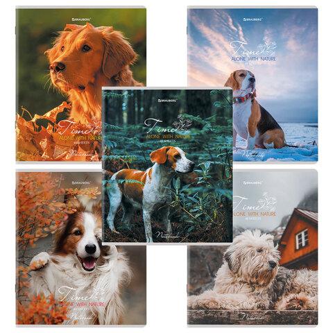 Тетради ДЭК А5 48 л. КОМПЛЕКТ 5 шт., BRAUBERG скоба, клетка, глянцевый лак, "Собачки", 404676