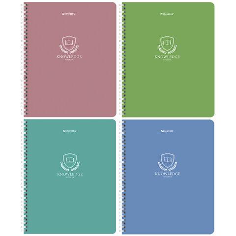 Тетради ДЭК А5 48 л. КОМПЛЕКТ 4 шт., BRAUBERG, гребень, клетка, матовая ламинация, "Knowledge", 404663