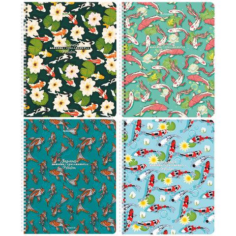 Тетради ДЭК А5 48 л. КОМПЛЕКТ 4 шт., BRAUBERG, гребень, клетка, TWIN лак, "Карпы Кои", 404661