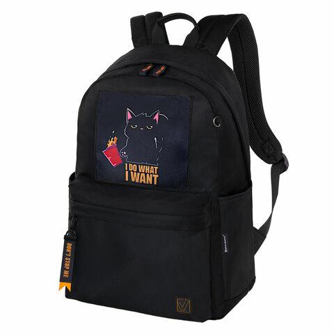 Рюкзак BRAUBERG FASHION CITY универсальный, карман-антивор, Cat, черный, 44х31х16 см, 272569