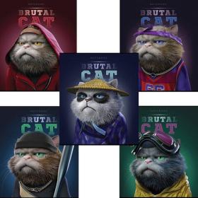 Тетрадь А5 48 л., ПЗБМ, скоба, клетка, конгрев, TWIN-лак, "Брутальные коты" (5 видов), 27391