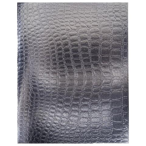 Тетрадь бумвинил А5 48 л., скоба, офсет №1, клетка, с полями, СЕРЕБРО, "Metallic", тиснение CROCO, HATBER, 071931, 48Т5бвВ1