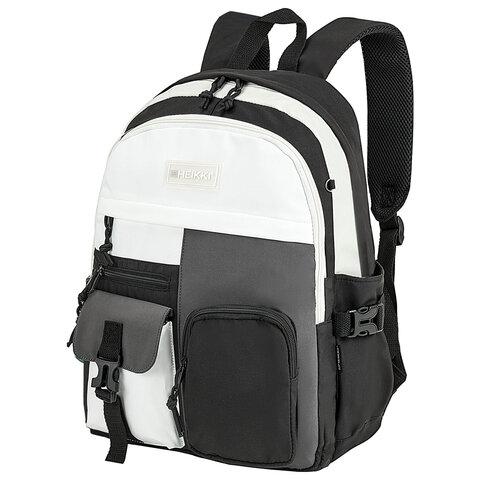 Рюкзак HEIKKI BLOCKS (ХЕЙКИ) универсальный, 2 отделения, черный / серый / белый, 44х32х17 см, 272563