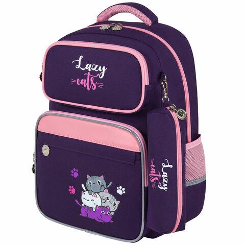 Рюкзак BRAUBERG STAR, 1 отделение, 5 карманов, "Dreamy cat", сиреневый, 40x29x13 см, 271424